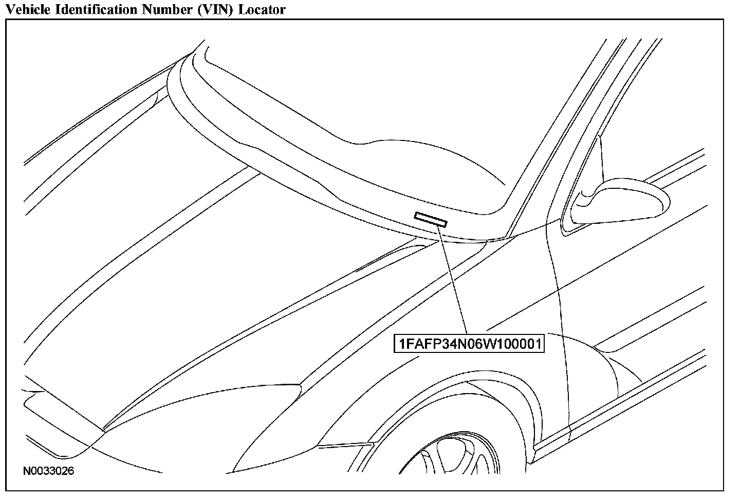 The vehicle identification number (VIN) is a 17-digit combination of letters and numbers. The VIN is stamped on a metal tab riveted to the instrument panel, top upper left of the dash. The VIN is also found on the vehicle certification (VC) label.