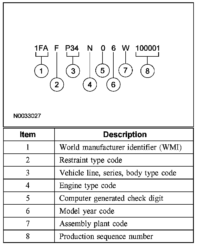 The first 3 vehicle identification number (VIN) positions are the world manufacturer code.