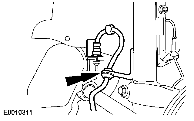 CAUTION: Do not allow the brake caliper to hang from the brake caliper flexible hose. Use a suitable tool to support the brake caliper.