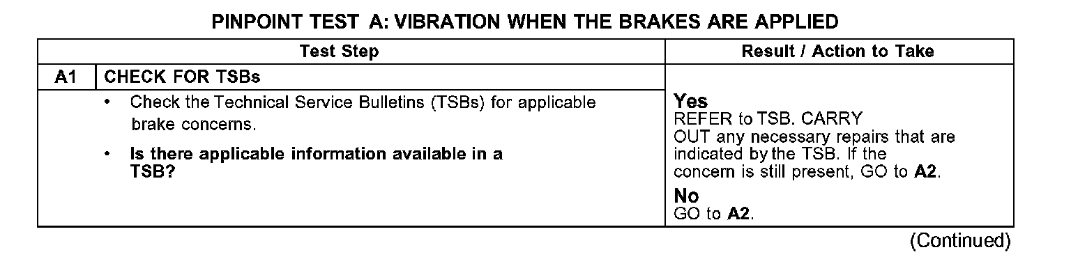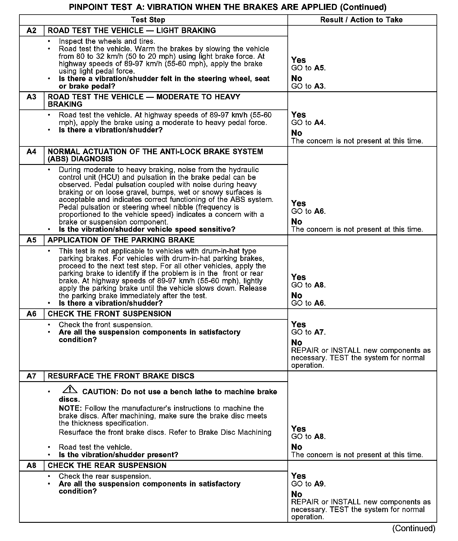 Pinpoint Tests A: Vibration When The Brakes Are Applied