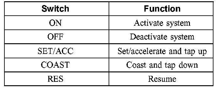 Pressing the OFF switch deactivates the speed control system. The speed setting stored in memory is erased.