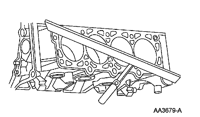 Use a straight edge and a feeler gauge to inspect the cylinder block for flatness. If the cylinder block is distorted, install a new short block assembly.