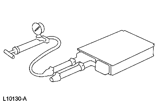 8. If the pressure drops, check the heater water hose connections to the core tubes for leaks. If the heater water hoses do not leak, remove the heater core from the vehicle and carry out the bench test.