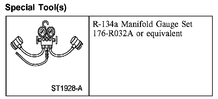 4. Connect the R-134a Manifold Gauge Set low-pressure hose and the R-134a low side quick disconnect to the low-pressure service gauge port valve.