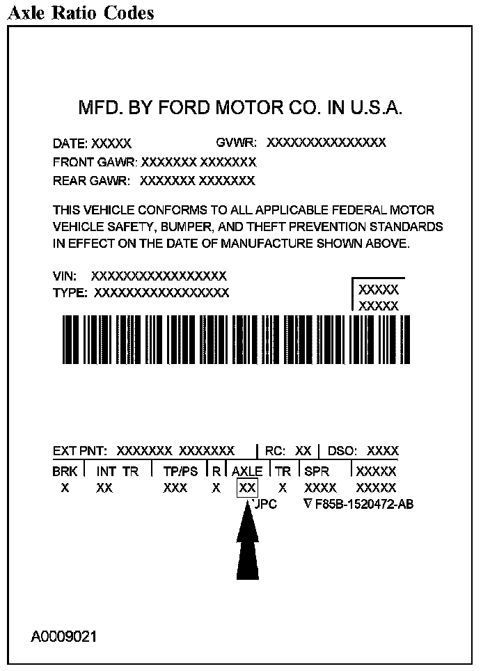 Powertrain calibration information is printed in the lower right corner of the Vehicle Certification Label. Only the base calibration information is printed. Revision levels will not appear, however, this information can be found in the On Line Automotive Service Information System (OASIS). For the current model year, Ford Motor Company is using 3 different protocols which describe powertrain base calibration. These protocols are designed to provide worldwide standardization for vehicle calibration. If the electronic calibration strategy has been used since 1998 and carried into the current model year, protocol 1 will be used. Refer to Protocol 1 below. If the electronic calibration strategy has been used since 1999 and is carried into the current model year, protocol 2 will be used. Refer to Protocol 2 below. For new electronic calibration strategies introduced since the 2000 model year, use protocol 3. Refer to Protocol 3 below.