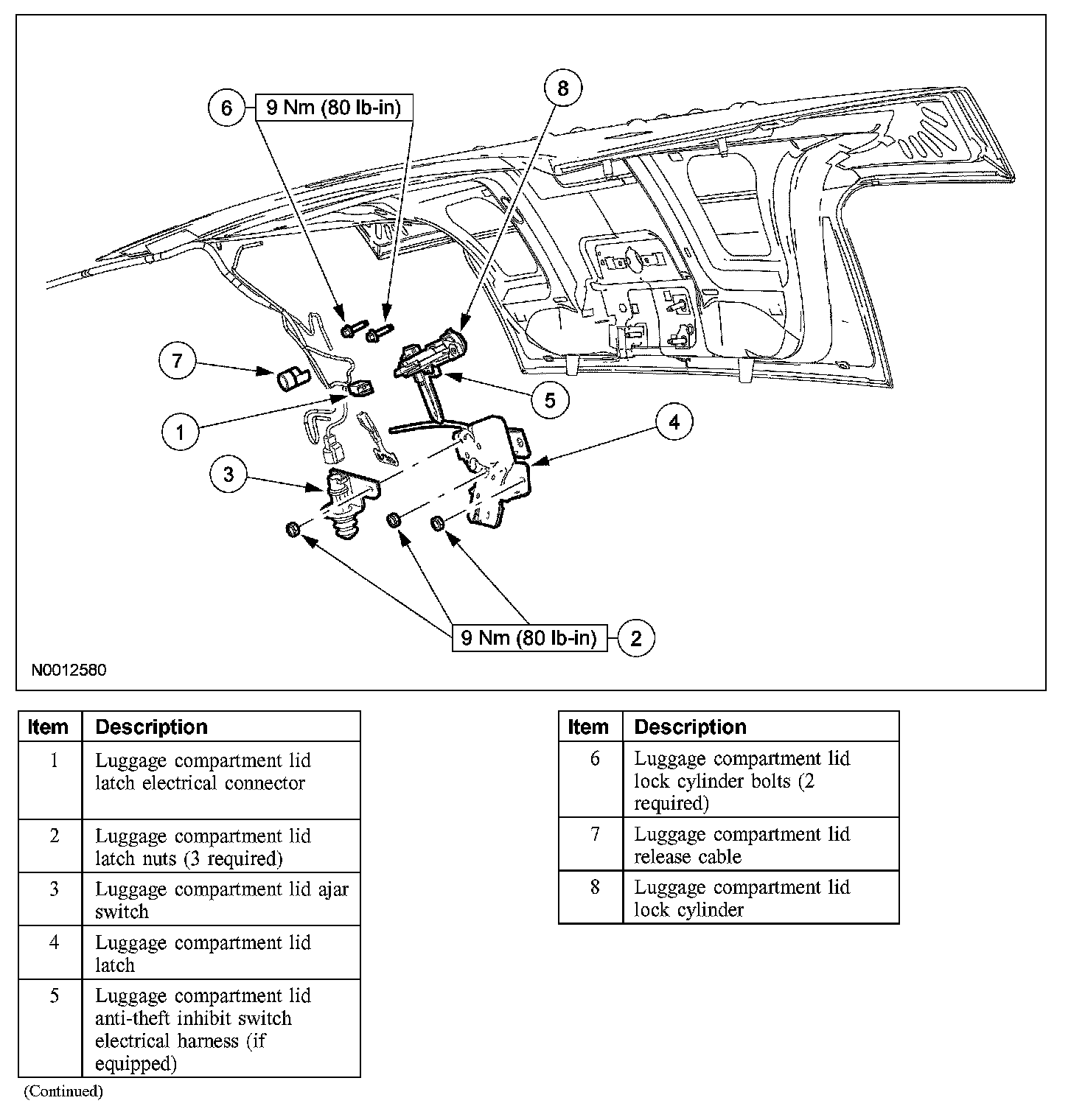 LUGGAGE COMPARTMENT LID LATCHRemoval and Installation