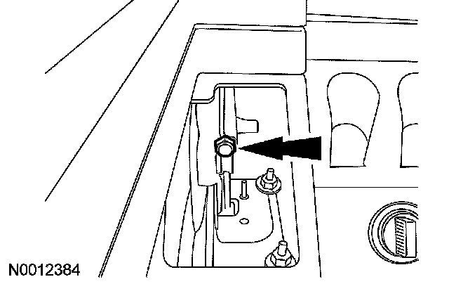 4. Apply the tension by tightening the parking brake cable adjustment nut until there is no lash in the system with the handle in the lowered position.