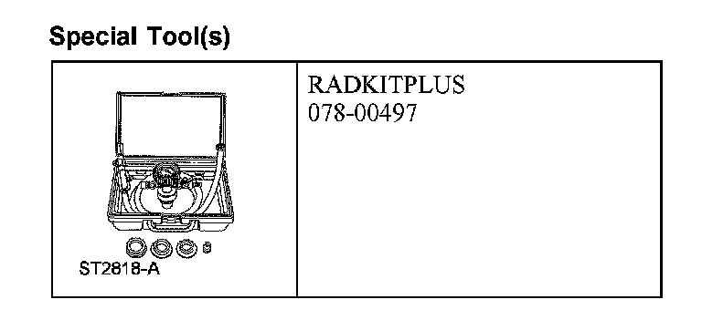 1. Using the special tool, install the RADKITPLUS and follow the RADKITPLUS manufacturer's instructions to fill and bleed the cooling system.