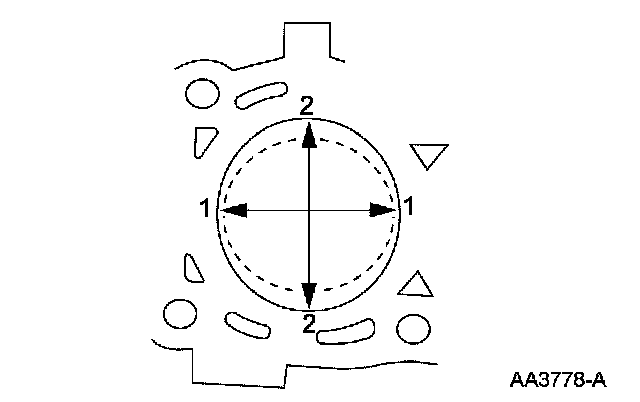 1. Measure the cylinder bore in 2 directions. The difference is the out-of-round. Verify the out-of-round is within the wear limit and bore the cylinder to the next oversize limit.