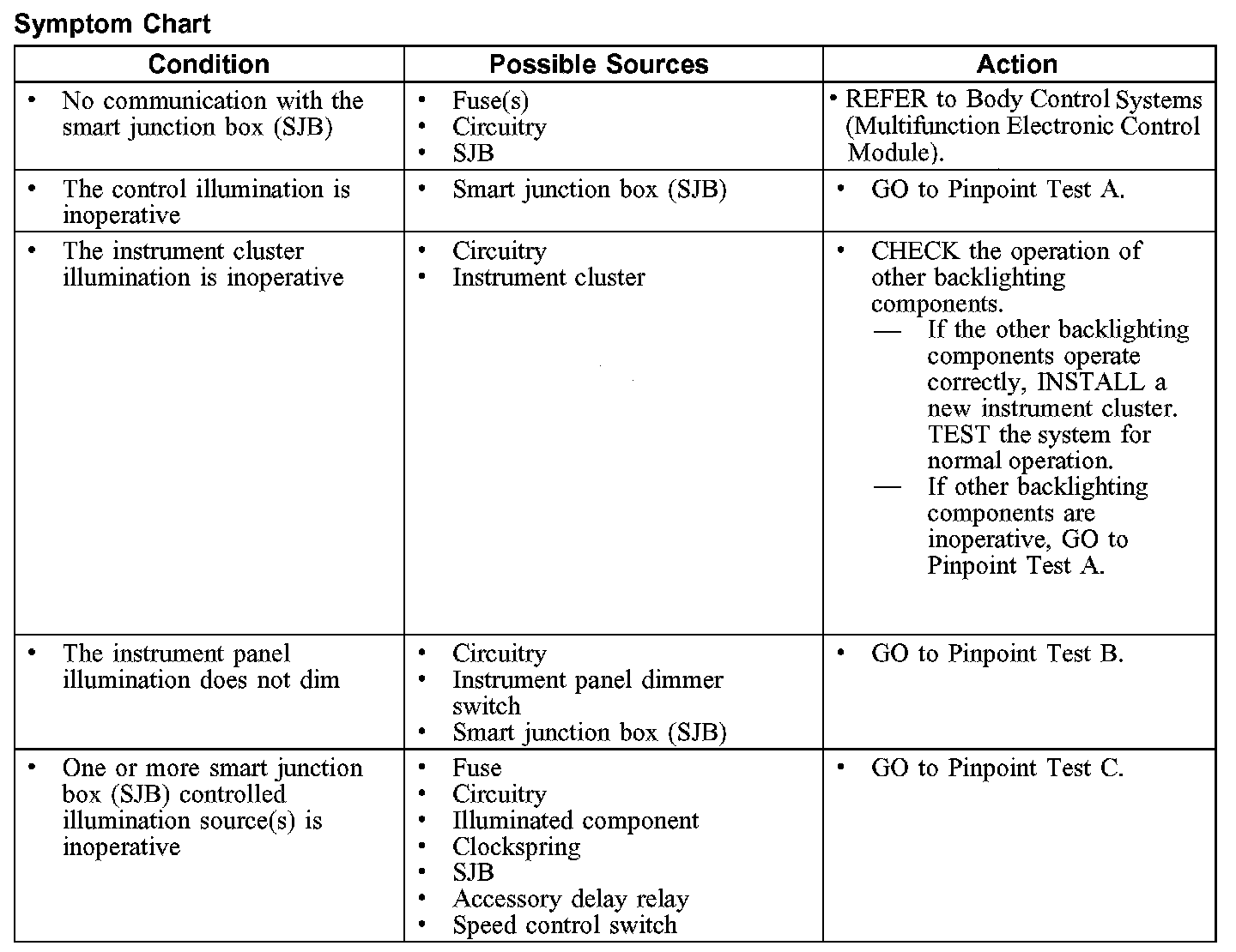 Diagnosis By Symptom - Instrument Cluster and Panel Illumination