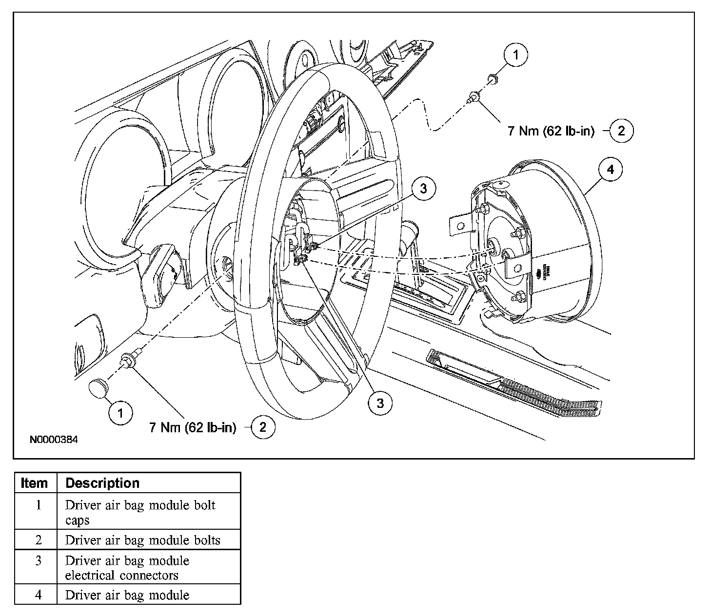 3. Remove the 2 driver air bag module bolts (1 shown).