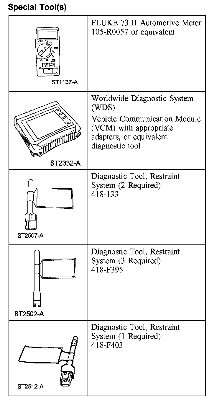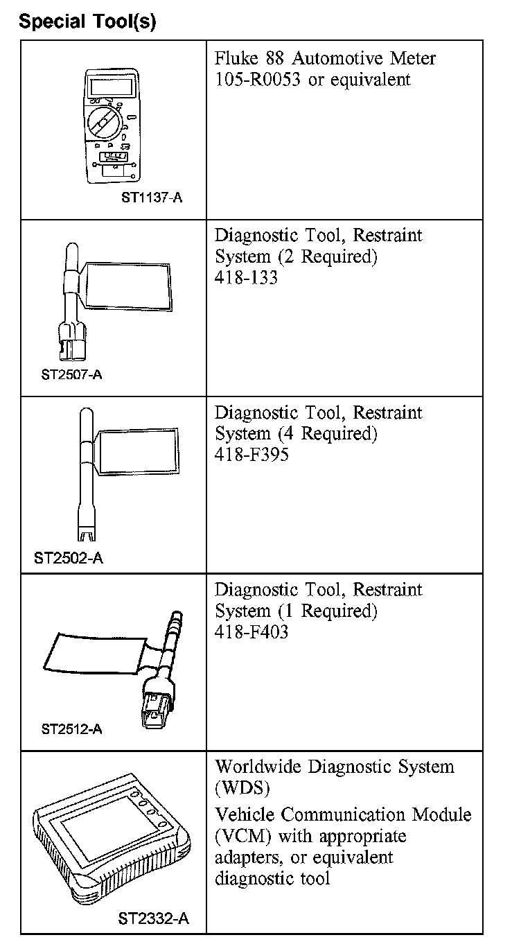 RESTRAINT SYSTEM DIAGNOSTIC TOOL WARNINGSpecial Tool(s):