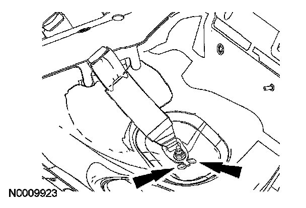 - When installing the safety belt buckle, align the locator tab between the dimples in the floor pan as shown for correct installation.