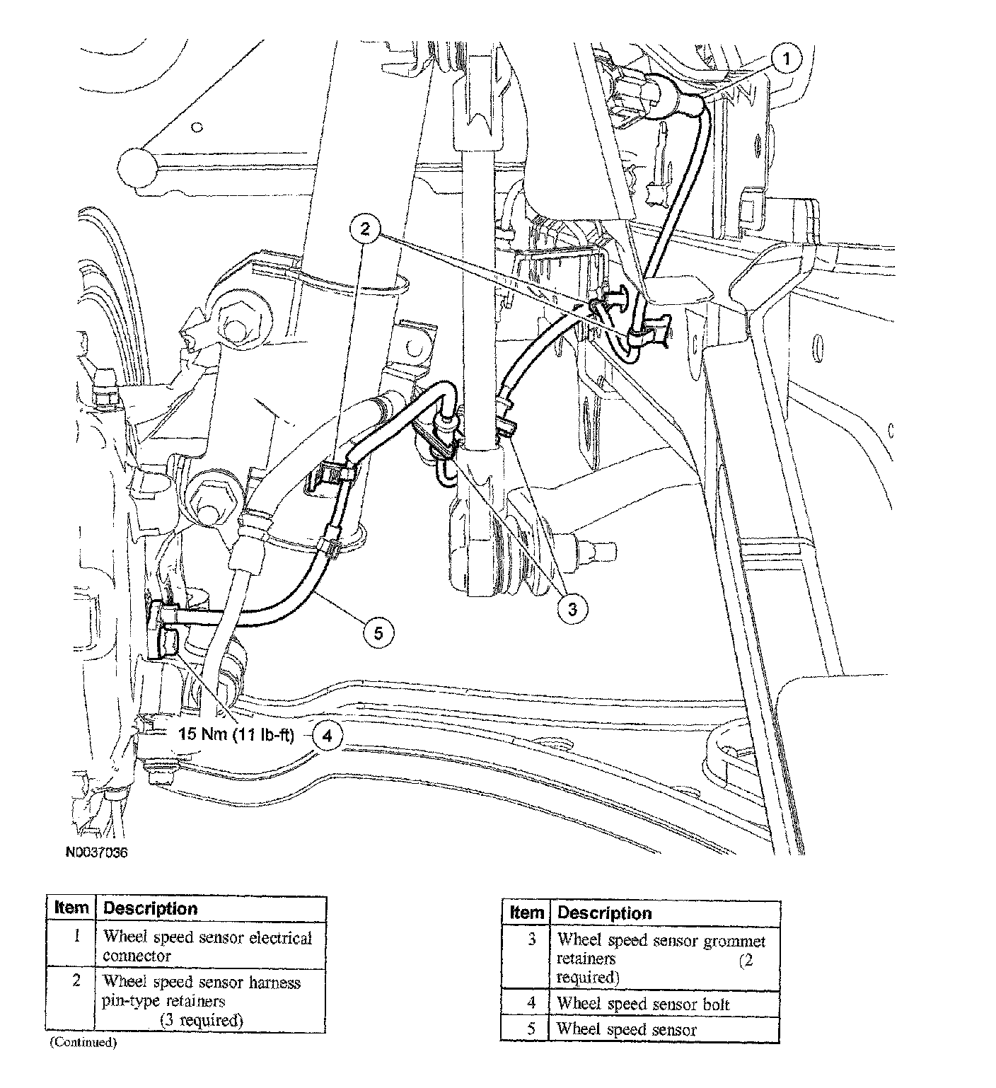 5. Disconnect the 2 wheel speed sensor grommet retainers from the brake hose clips.