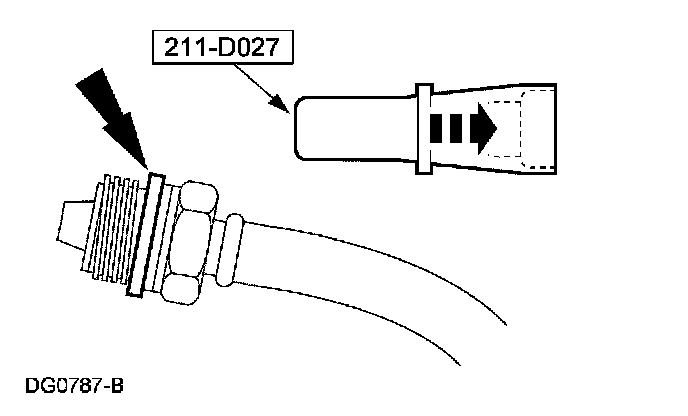 1. Using the special tool, install a new Teflon (R) seal on the power steering pressure line fitting.