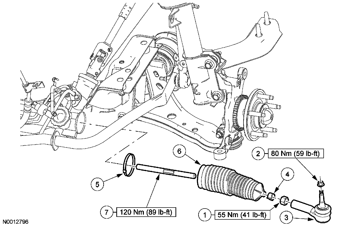 6. NOTE: Install the tie-rod end the same number of turns recorded during removal.
