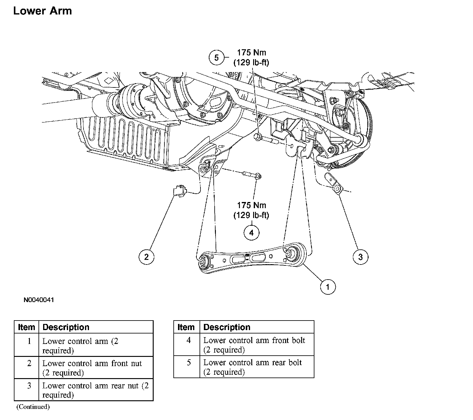 10. CAUTION: Tighten the lower arm bolts while the suspension is at curb height.