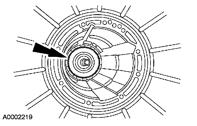 27. CAUTION: The low/reverse brake drum must be pulled forward to install the low/reverse planet retaining ring.
