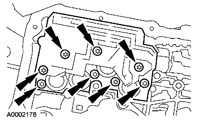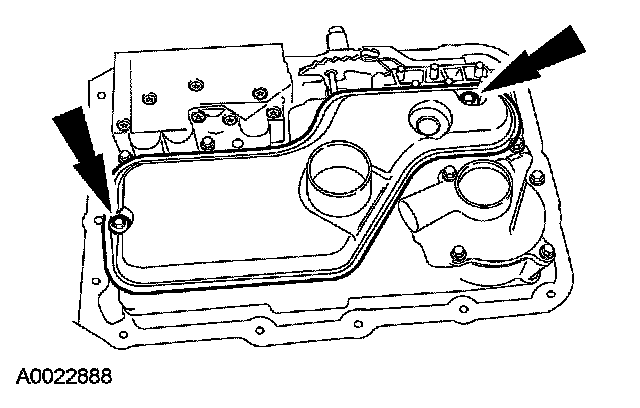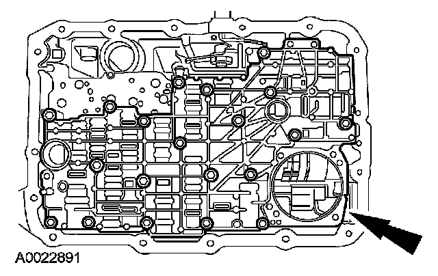 Remove the 16 transmission fluid pan screws, transmission fluid pan and gasket.
