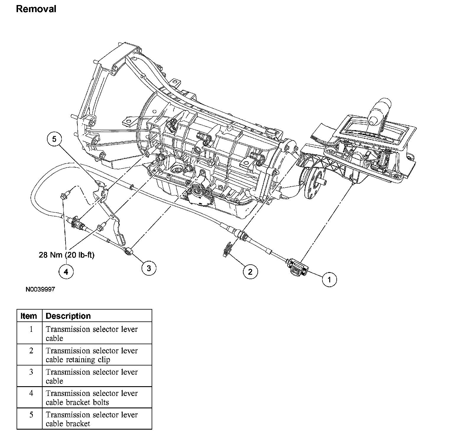 Selector Lever Cable and BracketRemoval