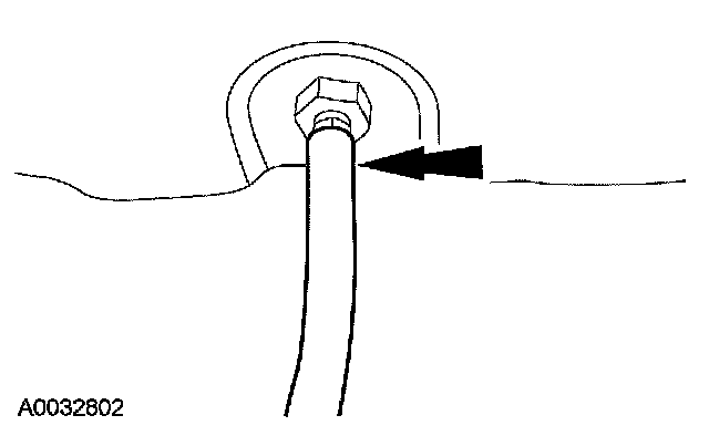 6. Connect one end of a clear hose to the cooler return line and route the other end of the hose to the special tool in the pan.