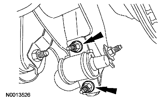 ^ Discard the stabilizer bar bracket-to-frame bolts.
