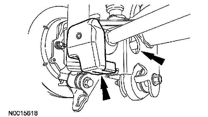 14. Remove and discard the trailing arm nuts and trailing arm bolts.