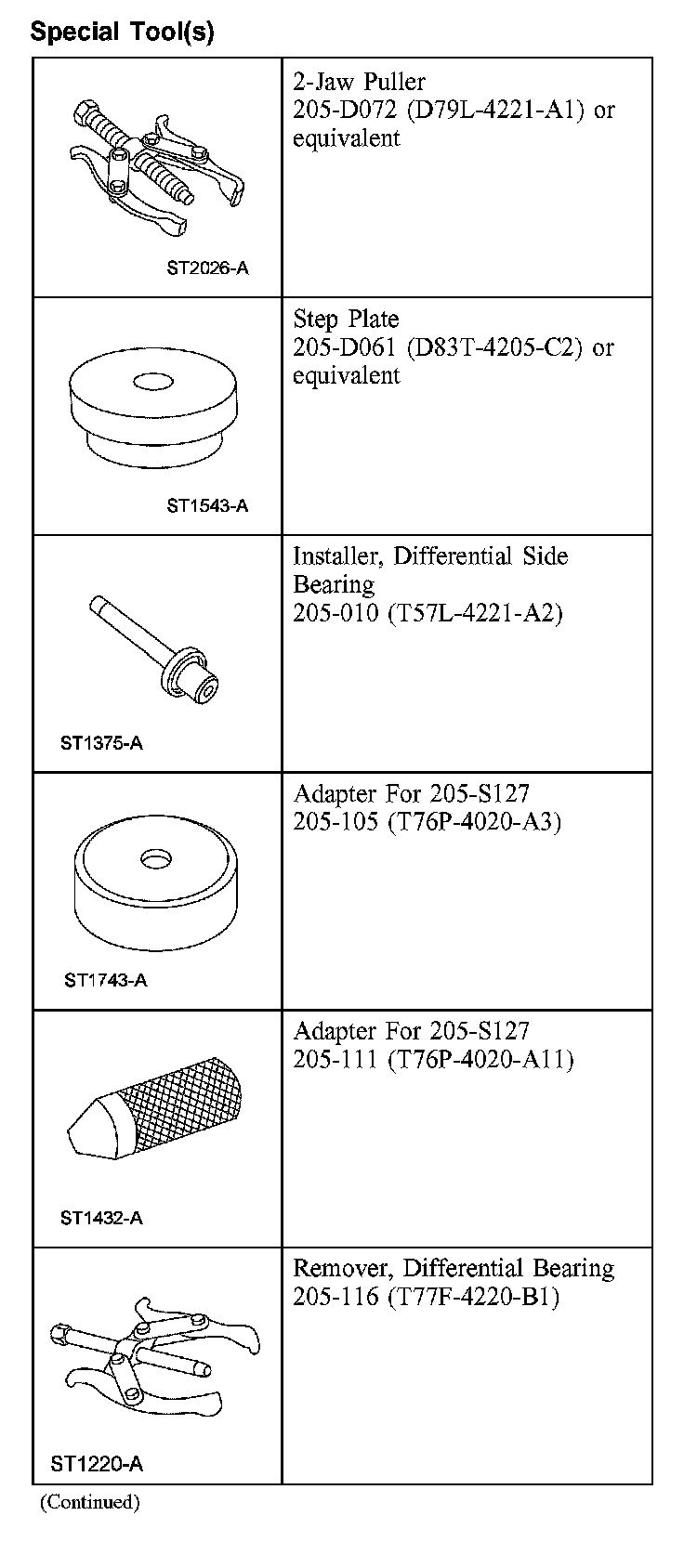 Differential BearingsSpecial Tool(s):