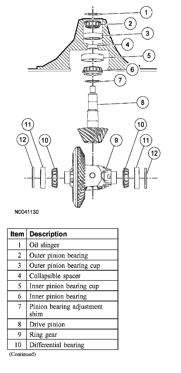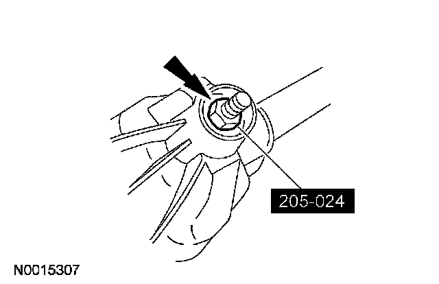 15. CAUTION: Do not, under any circumstance, loosen the drive pinion nut to reduce pinion bearing preload. If it is necessary to reduce the preload, install a new drive pinion collapsible spacer and drive pinion nut.