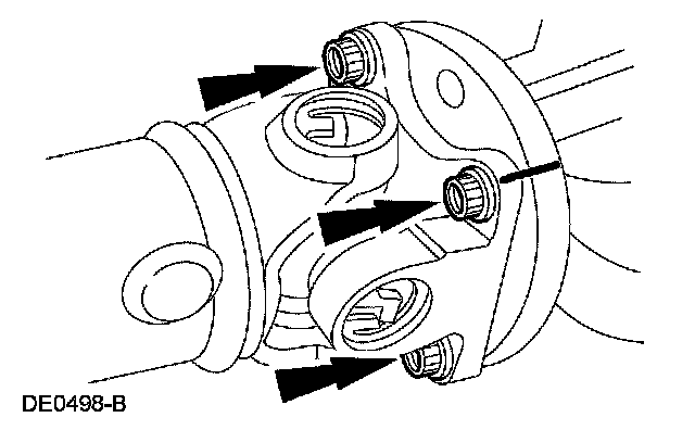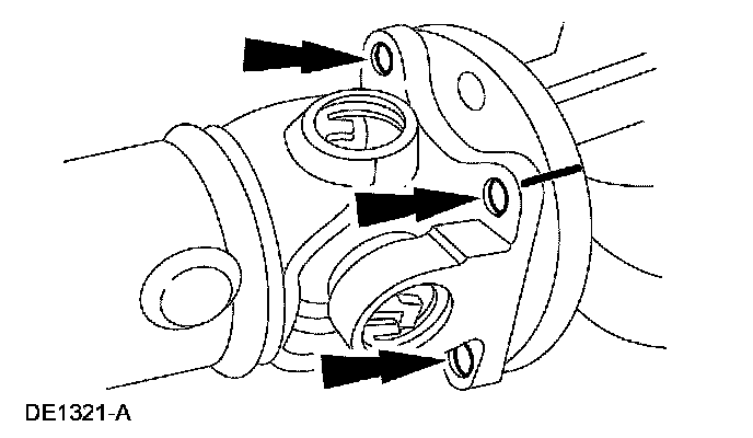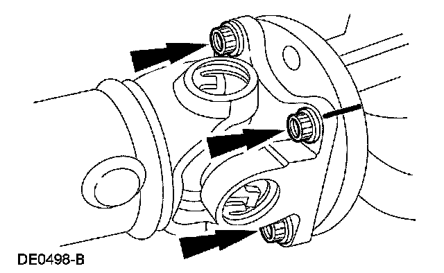 36. CAUTION: The driveshaft centering socket yoke fits tightly on the pinion flange pilot. To make sure that the driveshaft centering socket yoke seats squarely on the pinion flange, tighten the driveshaft flange bolts evenly in a cross pattern.