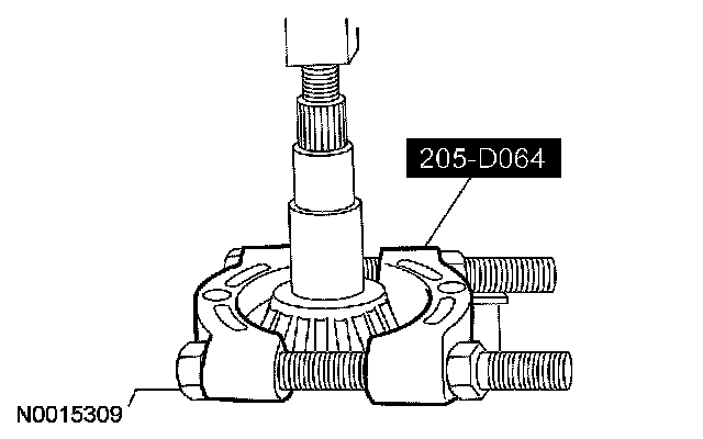 ^ After the correct drive pinion bearing adjustment shim thickness has been determined, remove all of the special tools.