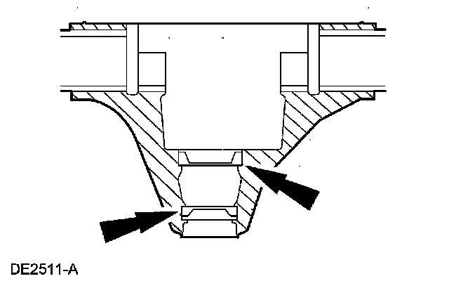 1 After placing the inner and outer bearing cups in their respective bores, place the special tool of the inner bearing cup.