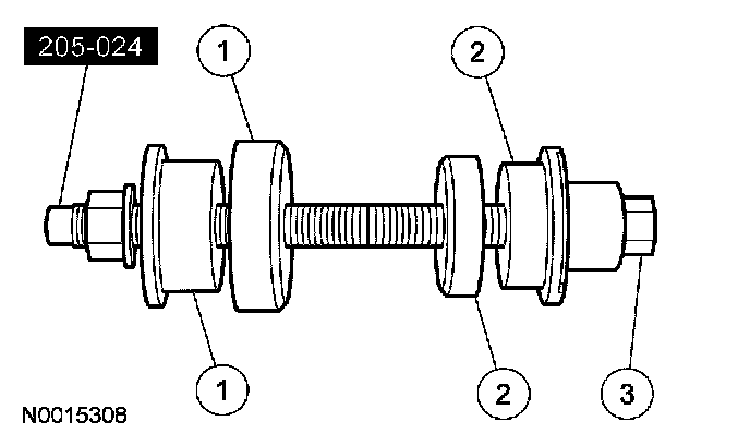 2. Position the special tool and the inner and outer bearing cups in their respective bores.