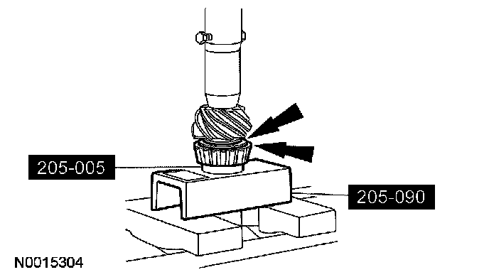 14. Using the special tool and a suitable press, remove the inner pinion bearing.