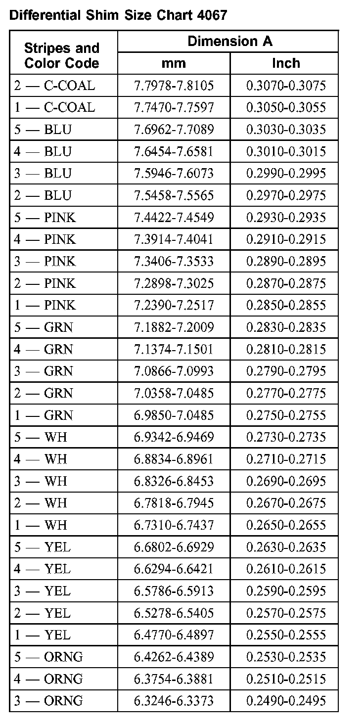 Differential Shim Size Chart 4067: