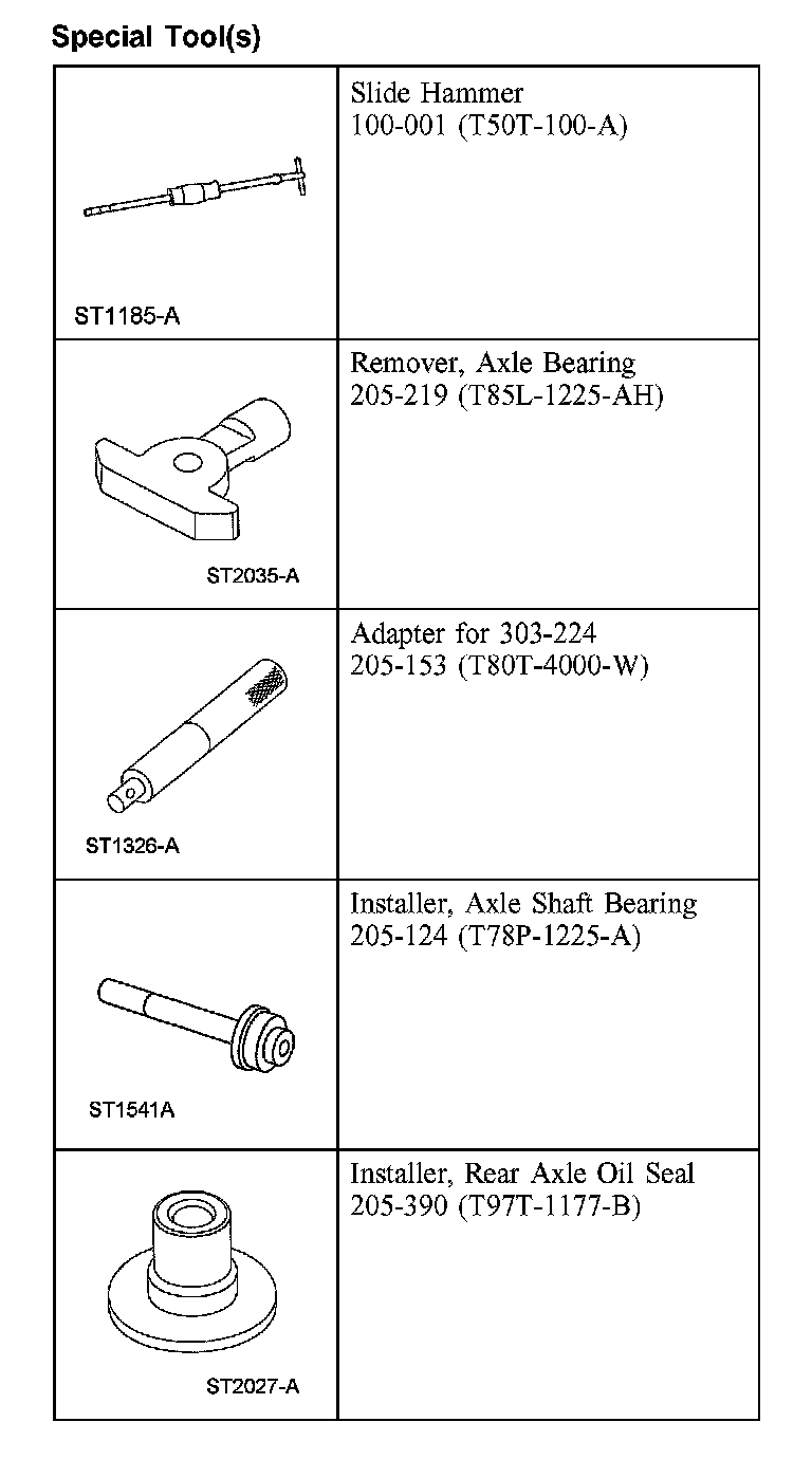 Rear Wheel Bearing and Axle Shaft Oil SealSpecial Tool(s):