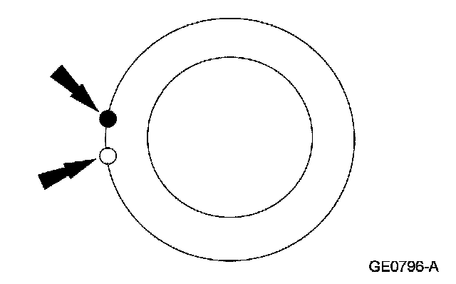 6. Excessive driveshaft runout may originate in the driveshaft itself or in the pinion flange. To determine which, compare the 2 high points marked in Steps 4 and if the marks are close together, within about 25 mm (1 inches), a new shaft must be installed and the vehicle road tested.