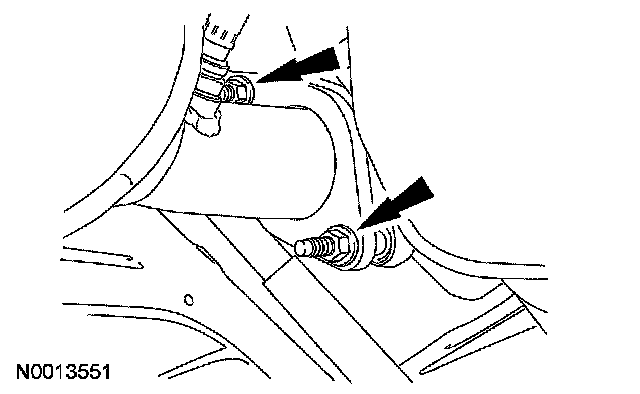 - Starting with the upper nut, alternately tighten, in 10 Nm (89 inch lbs.) increments, the LH catalytic converter-to-exhaust manifold nuts to specification.