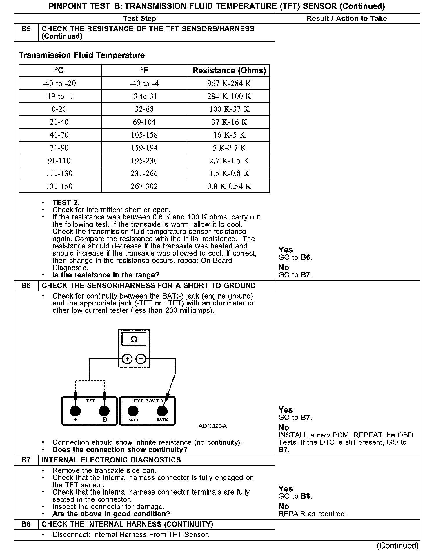 TEST B: TRANSMISSION FLUID TEMPERATURE (TFT) SENSOR