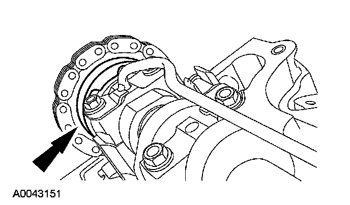 9. Remove the bolt and position the LH camshaft sprocket aside.