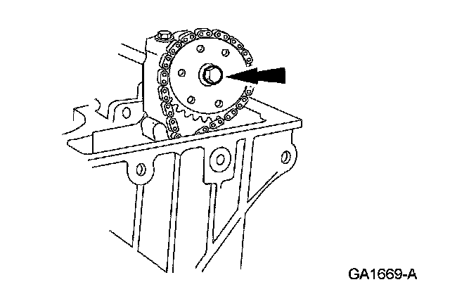 6. Remove the bolt and position the RH camshaft sprocket aside.