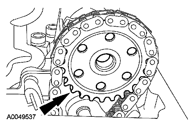 5. CAUTION: The RH camshaft sprocket is a LH-threaded bolt.