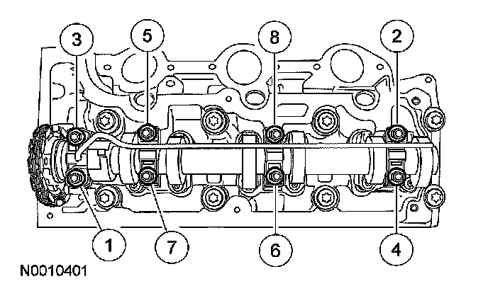 NOTE: After installing the bolts, check the camshaft for free rotation.