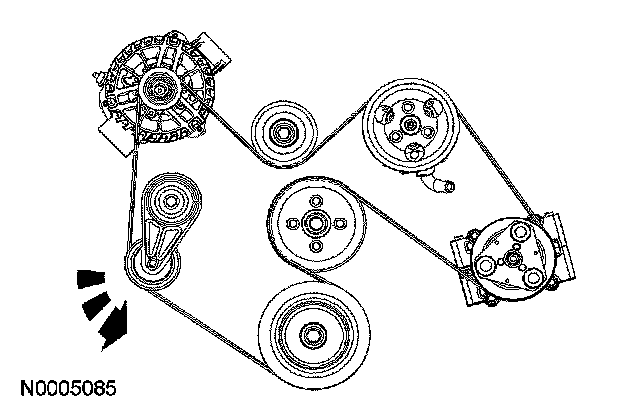 1. Using a suitable belt tensioner release tool, rotate the accessory drive belt tensioner counterclockwise and remove the accessory drive belt from the accessory drive belt tensioner.