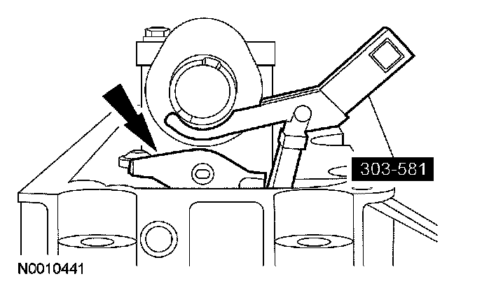 44. Install the special tools on the LH cylinder head and tighten the top 2 clamp bolts to 10 Nm (89 inch lbs.).
