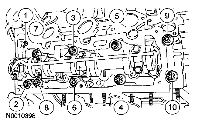 Remove the bolts in the sequence shown and remove the cylinder heads.