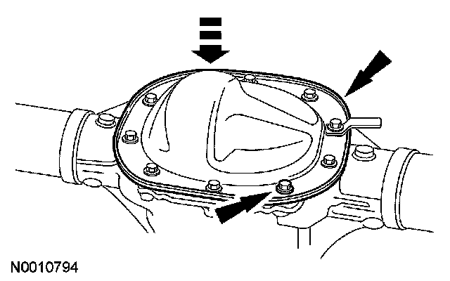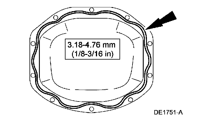 3. NOTE: The differential housing cover must be installed within 15 minutes of application of the silicone sealant, or new sealant must be applied. If possible, allow one hour before filling the axle housing with axle lubricant to make sure the silicone sealant has cured.