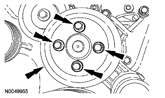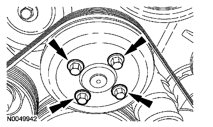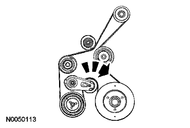 5. Using a suitable belt tensioner release tool, rotate the accessory drive belt tensioner clockwise and remove the accessory drive belt from the coolant pump pulley.