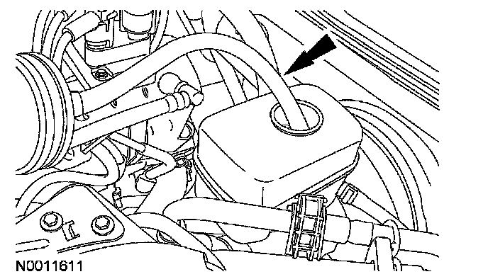 2. Disconnect the reservoir hose at the brake and clutch reservoir.