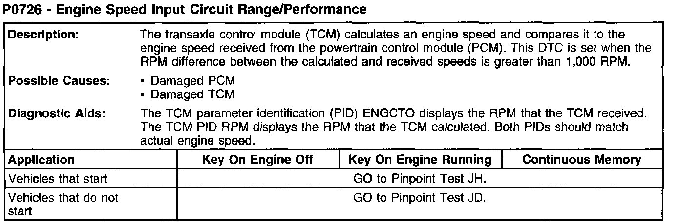 NOTE 4: Clear the transaxle control module (TCM) continuous DTCs. Carry out a TCM key ON engine OFF (KOEO) on demand self-test. If DTC POA92 is present again, check for damaged or seized engine, and install a new transaxle. If the DTC is not present, concern can not be duplicated or identified at this time. Go to PPT Z in Pinpoint Tests for intermittent diagnostics. Test Z: Intermittent